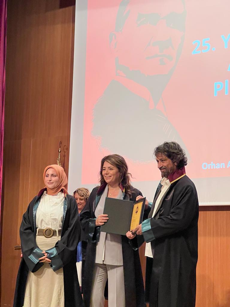 Kurucu ofis ortaklarından Av. Serdar Taptı, İstanbul Baro Başkanı Syn. Filiz Saraç’ın takdimiyle meslekteki 25. yıl plaketini almıştır. (10/09/2023)