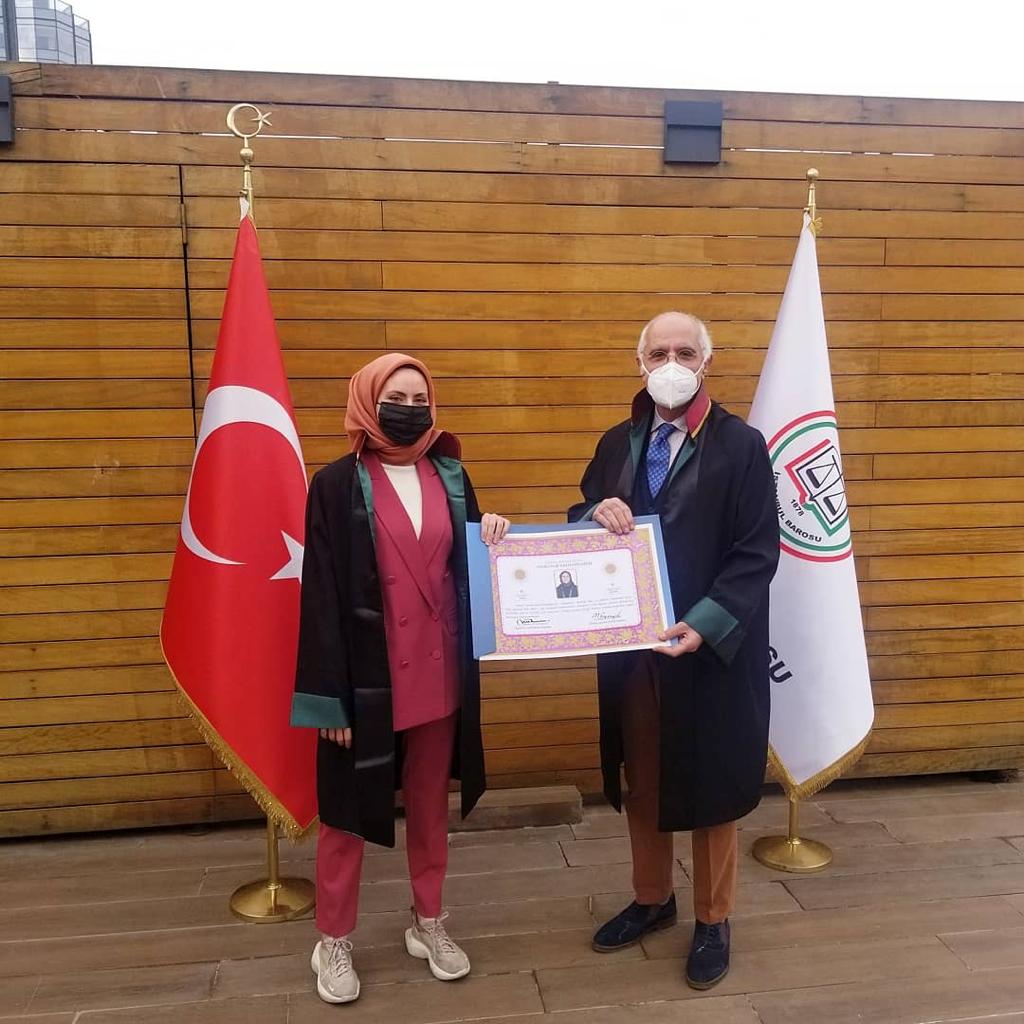 Kurucu ofis ortaklarından Av. Nil Ak Evren, Avukatlık Ruhsatnamesini, İstanbul Baro Başkanı Syn. Av. Mehmet Durakoğlu’nun takdimiyle almıştır.(02/02/2021)